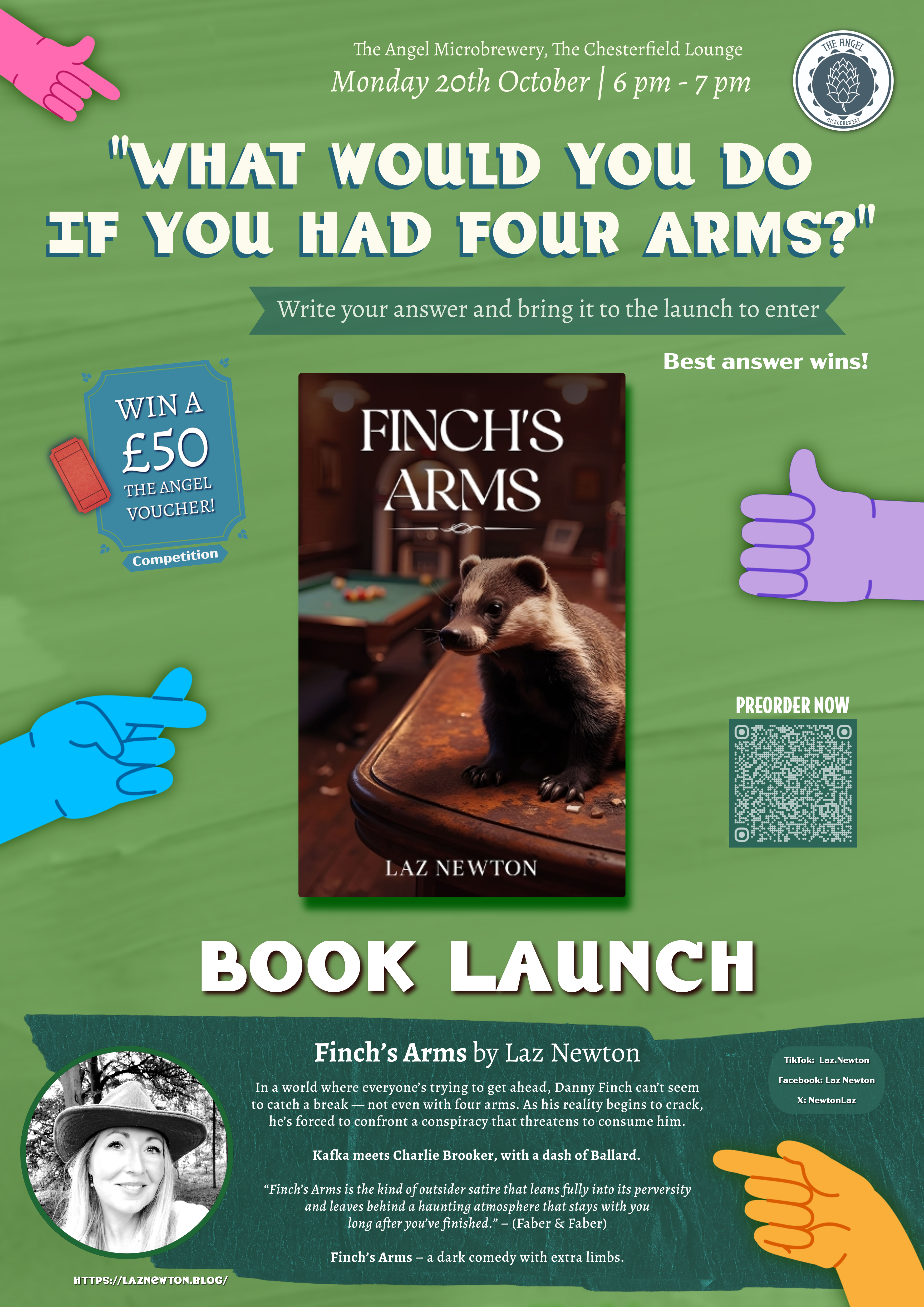 Laz Newton, from Oakham, will this month launch her debut novel, Finch's Arms, a dark comedy about a man who grows an extra pair of arms.